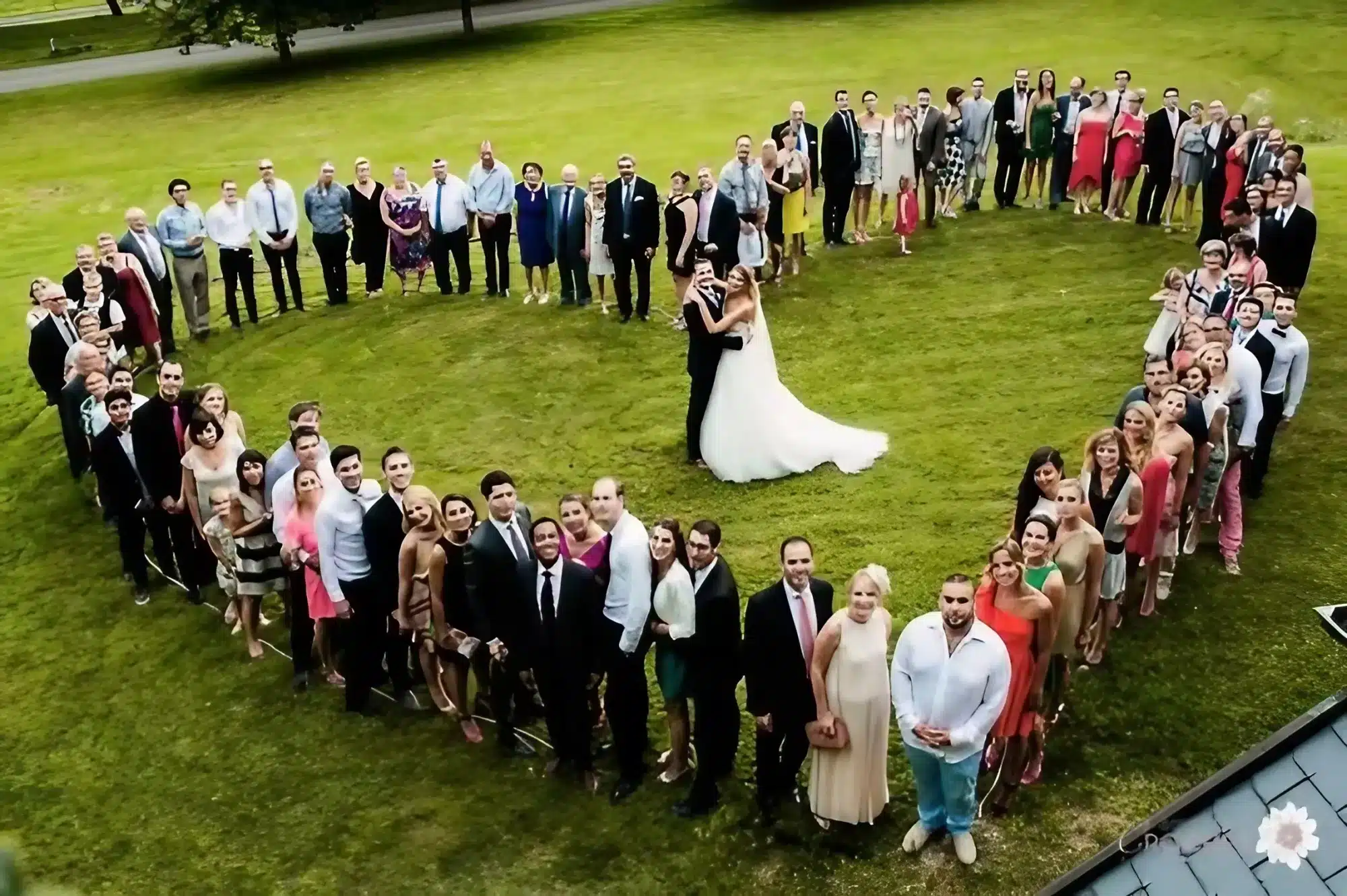 - Des plans de groupe originaux : vos invités rassemblés dans des compositions uniques, visibles uniquement depuis le ciel.